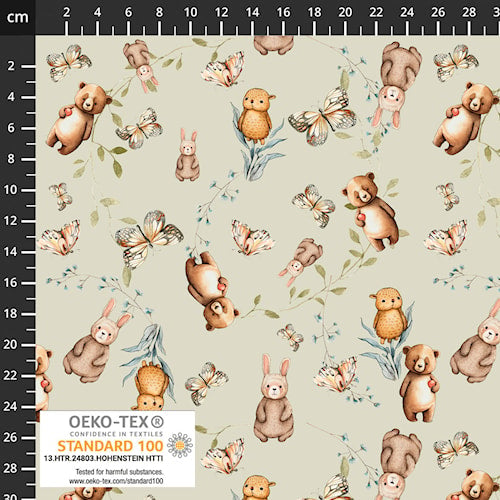 Dieser AVALANA Jersey ist wie ein Spaziergang durch den stillen Wald: Bärchen, Häschen, Eulen und zarte Schmetterlinge erzählen leise Geschichten und bringen Ruhe auf den Nähtisch. Verspielt, aber wohlig – genau richtig für Kleidung, die Geborgenheit schenkt und im Alltag besteht.
