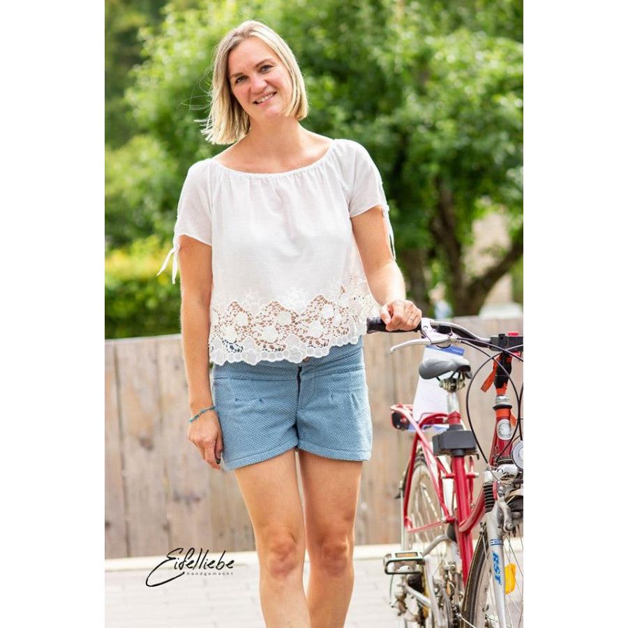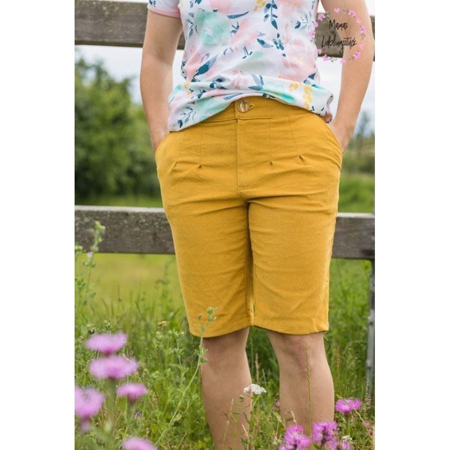 Du entscheidest über deinen Look: Wähle zwischen vier Längen – lang, 7/8, Bermuda oder Shorts – und ergänze je nach Stil Reißverschluss oder Knopfleiste, Paspeltasche oder aufgesetzte Gesäßtasche, klassischem oder gekrempeltem Saum. Die optionale Passe vorne oder hinten sorgt für eine schöne Silhouette und angenehmen Tragekomfort.