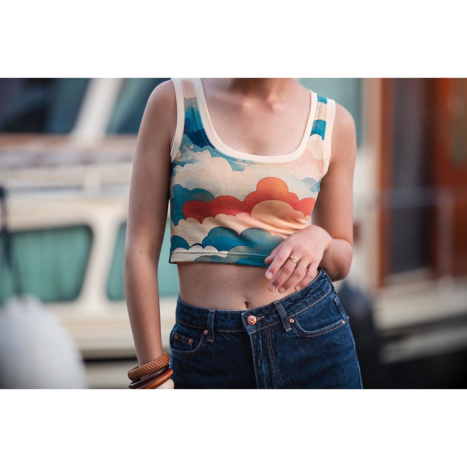 Moin aus der Nähkoje! Dieser French Terry sieht aus, als würdest du über den Wolken nähen. Sanfte Wolken ziehen in Blau- und Cremetönen über den Stoff, dazwischen warme Sonnenfarben – fast wie ein Abendhimmel an der Ostsee. Ein Stoff, der sofort Ruhe ausstrahlt und trotzdem ein richtiger Hingucker ist.