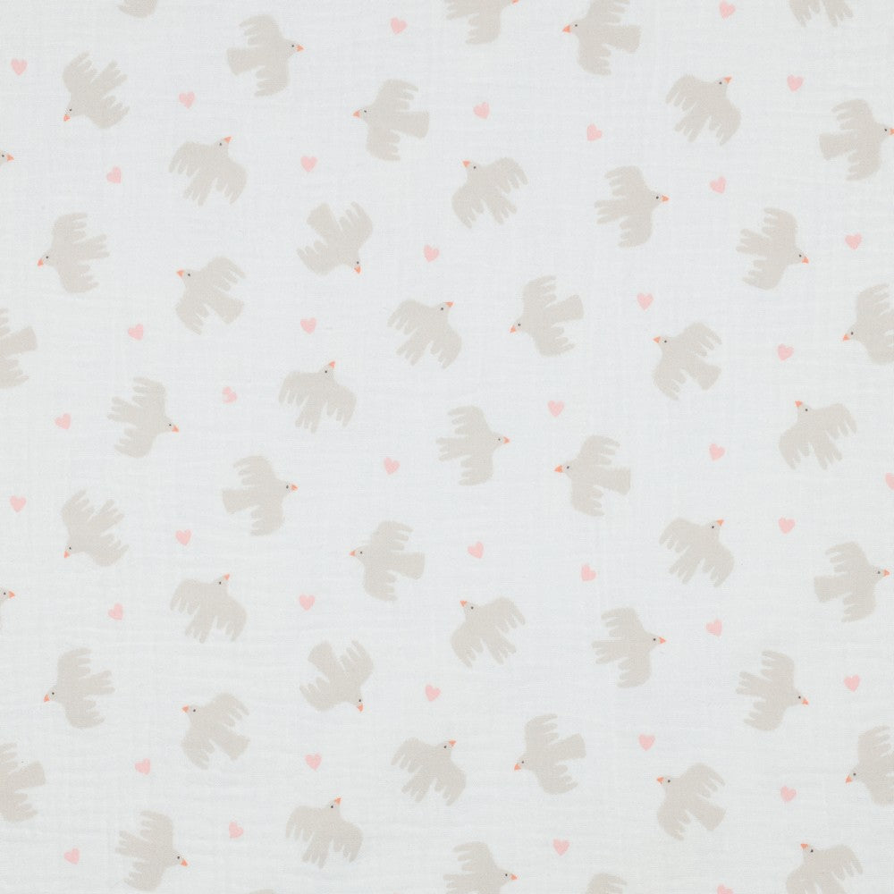 Musselin 2-lagig GOTS „BIRDS“ – 100 % Baumwolle
