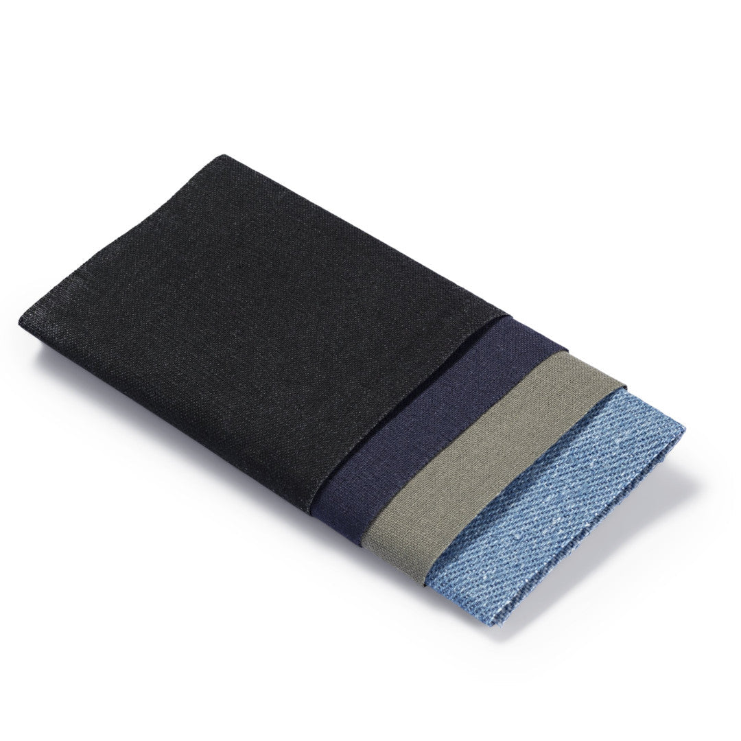Abmessungen: 7 cm x 14 cm | Farbe/Oberfläche: schwarz/jeans grau/dunkelblau | Menge: 4 Stück | Verkaufseinheit: Karte