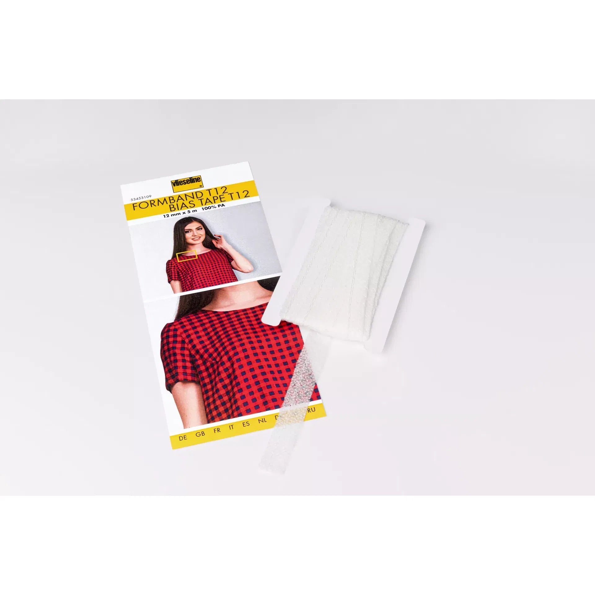 Genau hier kommt dein stiller Held ins Spiel: das Formband T12. Dieses schmale, diagonal geschnittene Band wird einfach aufgebügelt – und plötzlich bleiben Rundungen, Schulternähte und Ausschnitte genau dort, wo sie hingehören.