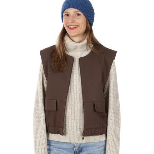 FRAU BORA ist genau das richtige Projekt für alle, die ihrem Outfit einen coolen, zeitgemäßen Look verleihen möchten. Der kurze Schnitt mit breiten Schultern sorgt für den angesagten Oversized-Vibe und macht die Weste zu einem echten Hingucker – egal ob über Shirt, Hoodie oder Kleid getragen.