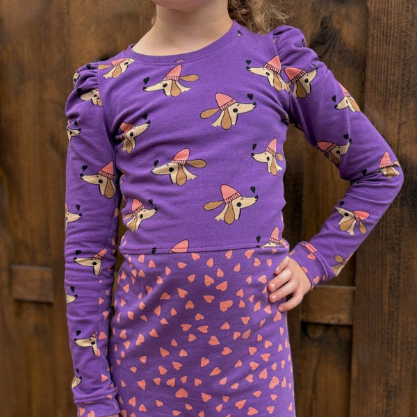 FRENCH TERRY DOGS AND HEARTS - Purple