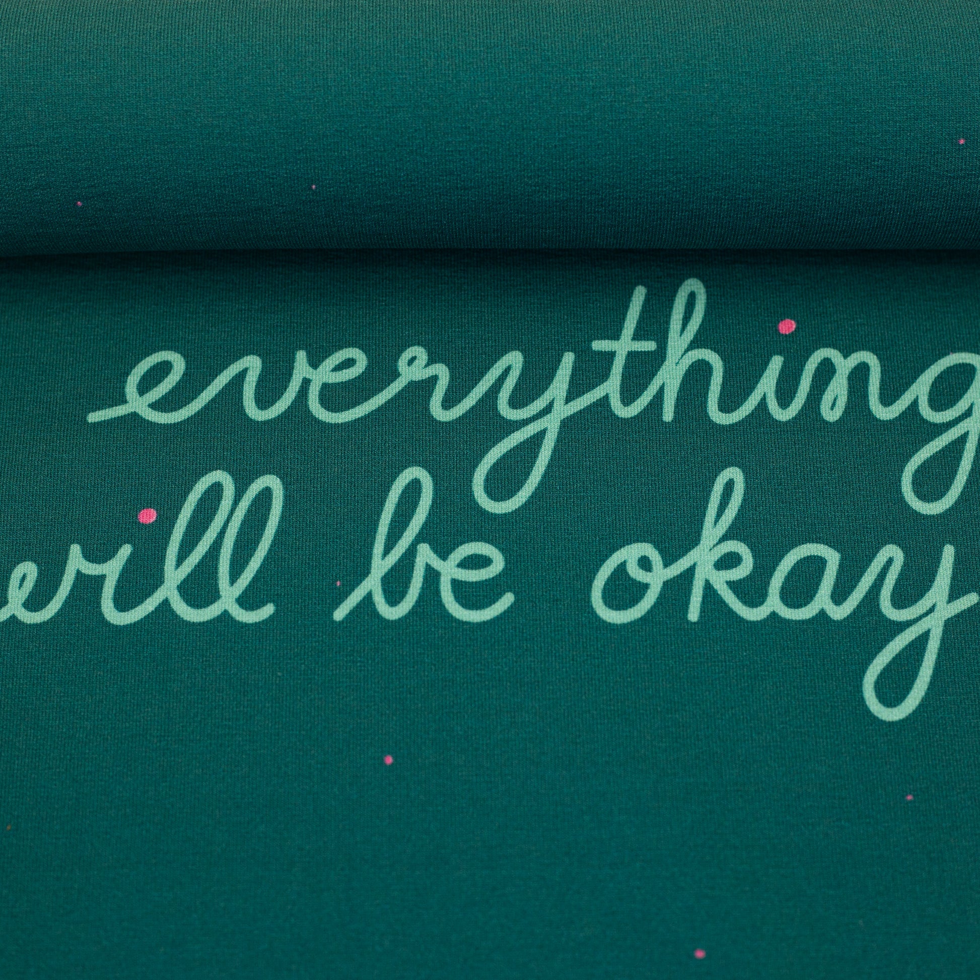 Dieses Panel ist mehr als nur Stoff – es ist ein kleines Stück Zuversicht zum Anziehen. Der liebevolle Schriftzug "Everything will be okay" macht dein Nähprojekt sofort persönlich und besonders. Genau richtig für Deine Lieblingsklamotte, die nicht nur wärmt, sondern auch ein Lächeln mitbringt. Perfekt für Kinder, Teens oder auch für dich selbst, wenn Du in der heutigen Zeit Zuversicht verbreiten willst..