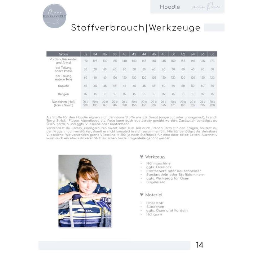 Mit Paco nähst Du Dir einen Hoodie, der so wandelbar ist wie Deine Nählaune! Ob mit oder ohne Teilung, mit Kapuze, Kragen oder Halsbündchen – dieser Schnitt lässt Dir jede Menge kreativen Spielraum. Die Teilungen eignen sich perfekt, um Stoffreste stylish zu kombinieren oder besondere Lieblingsstoffe in Szene zu setzen.