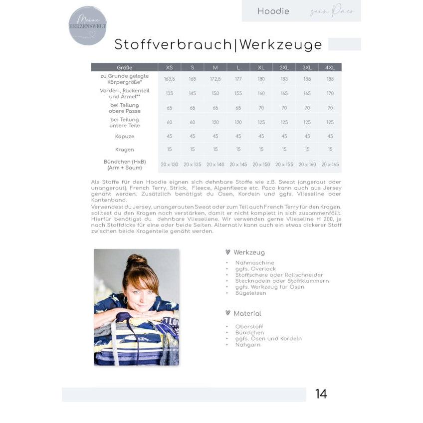 Mit dem Herren-Hoodie Paco nähst du ihm ein echtes Lieblingsstück – lässig, modern und so wandelbar, wie er es braucht! Dieses vielseitige Schnittmuster begleitet dich vom sportlichen Alltagslook bis hin zum gemütlichen Kuschelhoodie am Wochenende.