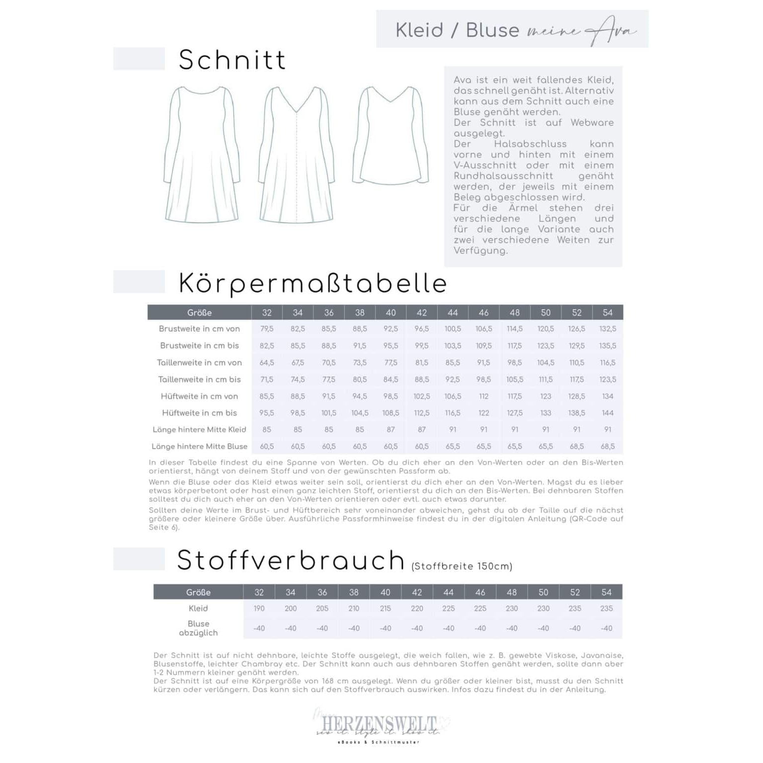 👗 Bluse oder Kleid Ava – Papierschnittmuster in Größe 32–54