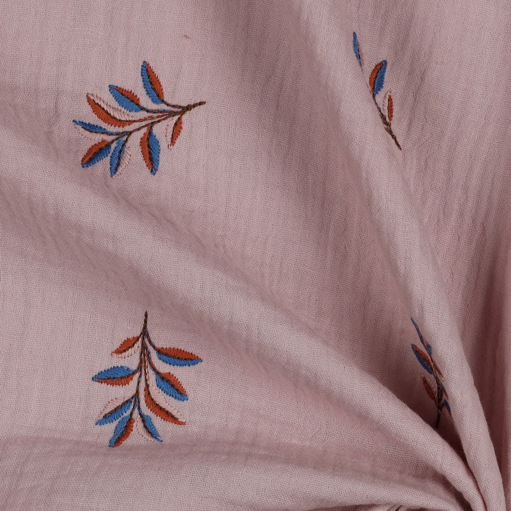 dieser Musselin ist wie ein ruhiger Morgen an der Küste. Der zarte Roséton wirkt warm und weich, während die kleinen Zweige in Blau- und Rosttönen feine Akzente setzen. Das Muster bleibt dezent und natürlich – verspielt genug für Kinderkleidung, aber gleichzeitig so ruhig, dass auch Blusen oder Tuniken daraus wunderschön wirken. Genau dieser nordische, unaufgeregte Look macht den Stoff zu einem echten Allrounder.