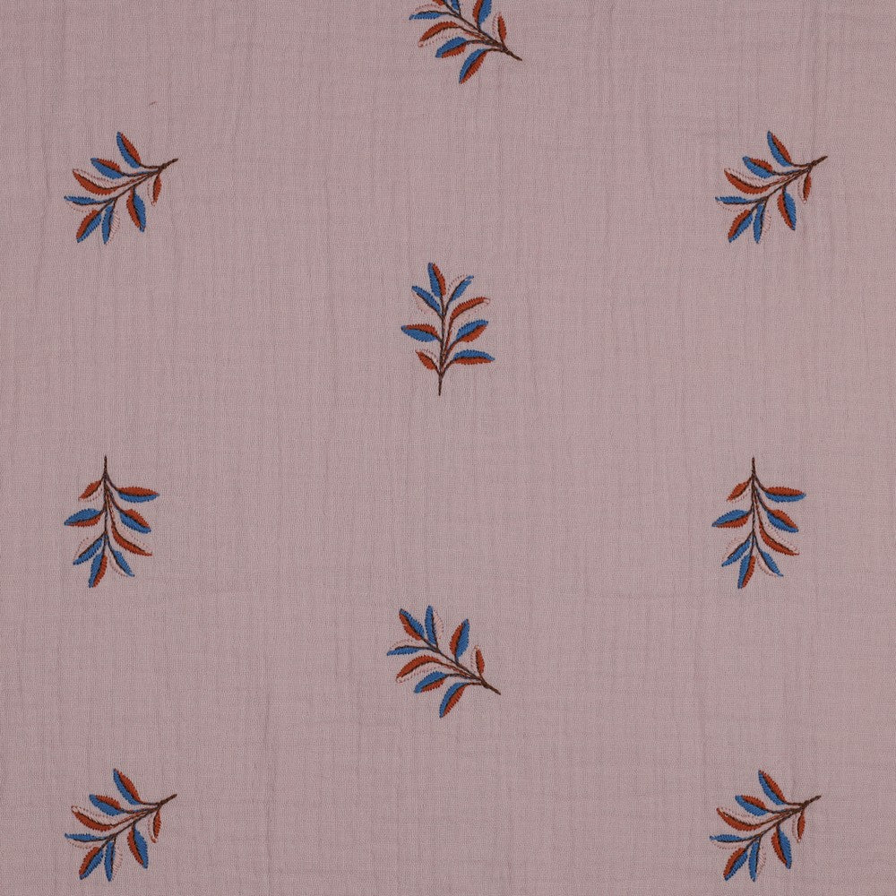 Musselin bestickt mit Blättern - lila