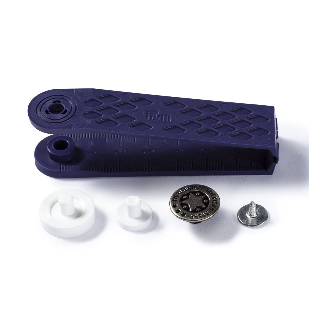 Die Prym Jeansknöpfe in altsilber (Ø 17 mm) sind perfekt für robuste Jeansjacken, Hemden oder Hosen. Sie überzeugen mit ihrem typischen Denim-Look und halten auch starker Beanspruchung stand. Die Packung enthält 8 Stück sowie das passende Werkzeug für die einfache Verarbeitung – ganz ohne Nähmaschine. Jeansmode selbstgemacht? Mit diesen Knöpfen kein Problem!