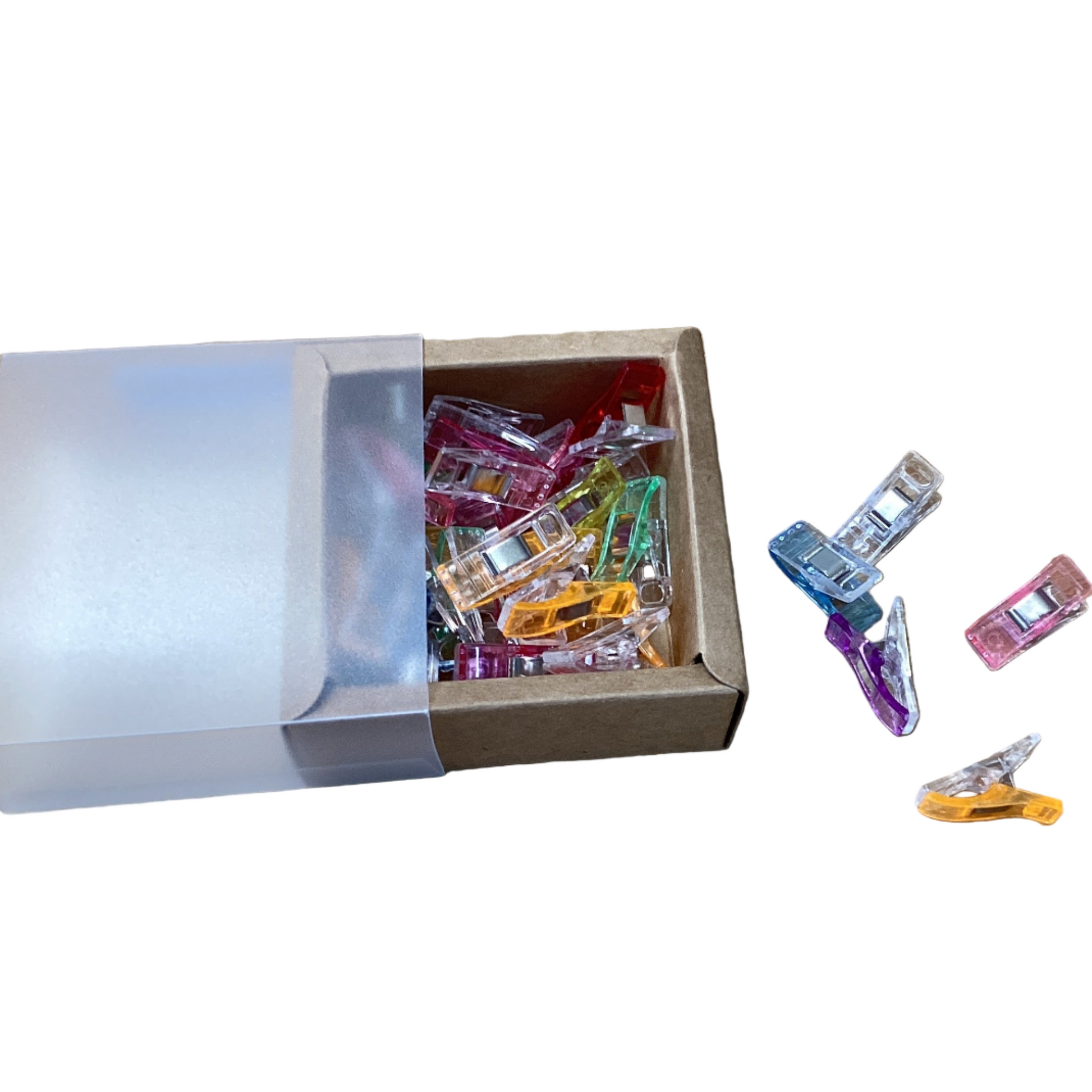 Hier bekommst du 30 tolle bunte Nähhelfer, die Dein Projekt zusammenhalten, bis Du es genäht hast.