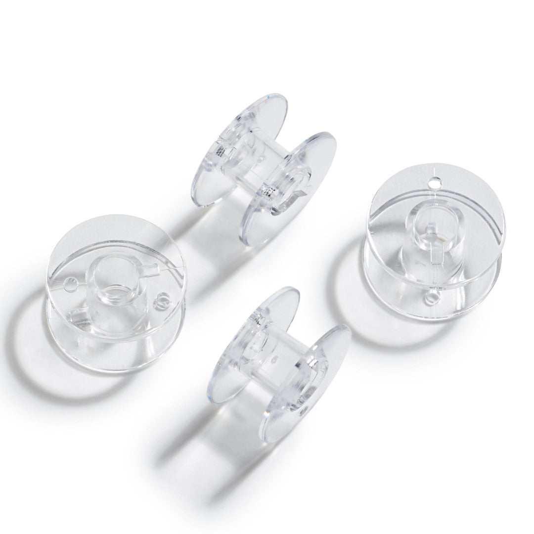 Diese transparenten Nähmaschinenspulen mit Ø 20,5 mm x 11,5 mm sind perfekt für Maschinen von JANOME, BROTHER und SINGER (außer Apollo-Greifer). Durch das klare Material siehst du immer sofort, wie viel Garn noch auf der Spule ist – Schluss mit bösen Überraschungen mitten im Nähprojekt. Praktisch verpackt zu 4 Stück, für einen reibungslosen und organisierten Nähalltag.