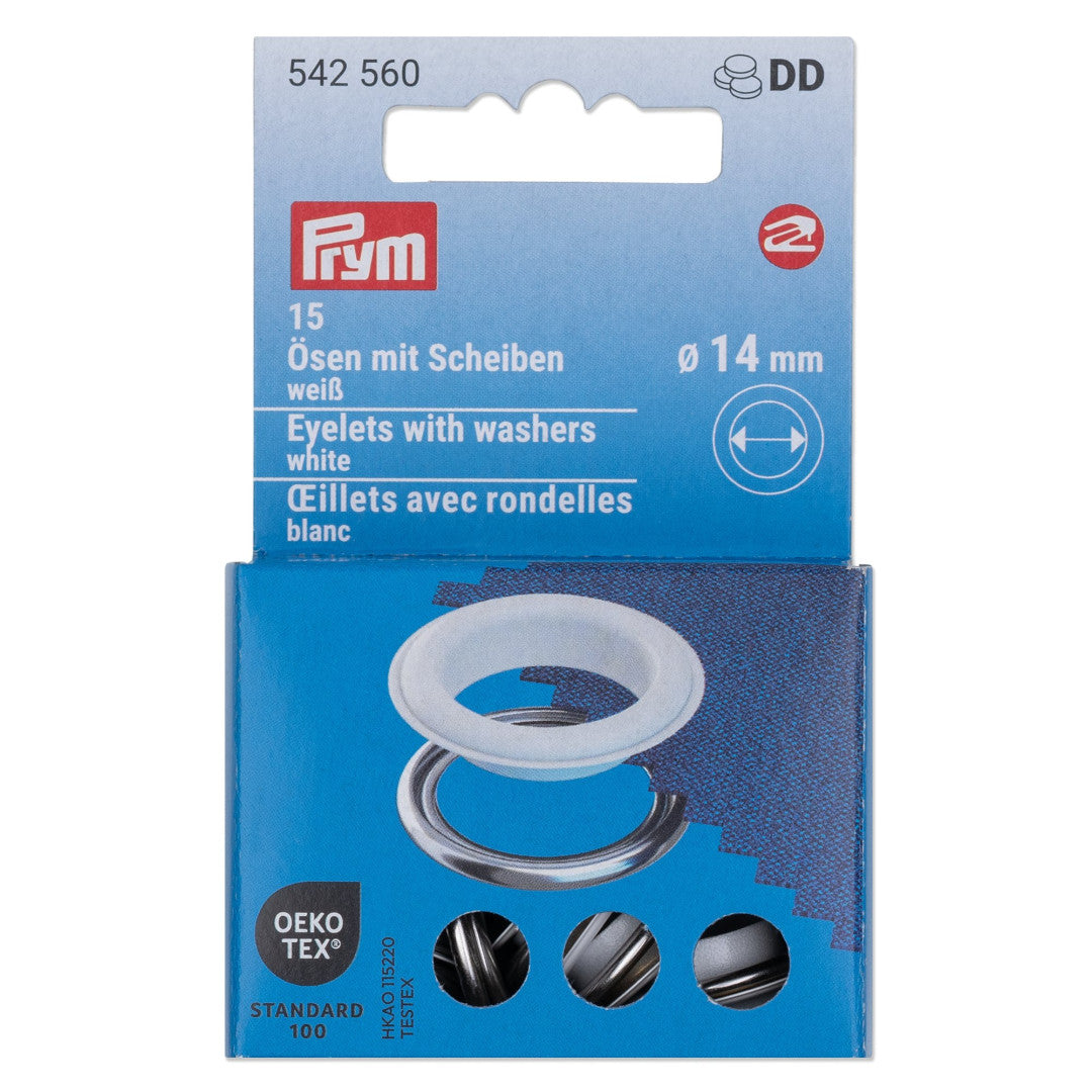 Ösen mit Scheiben, 14 mm, weiß/silberfarbig