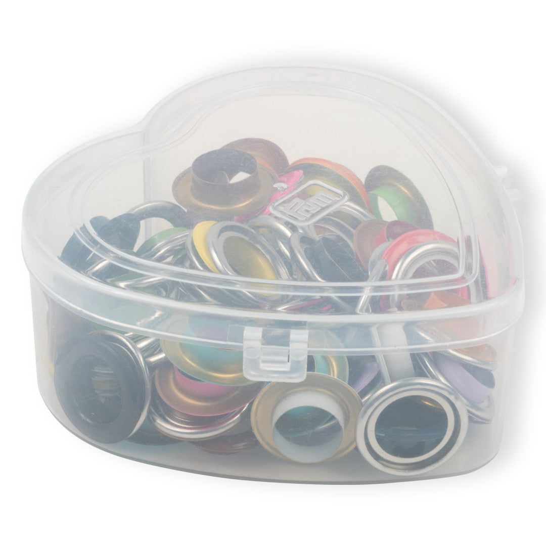 Ösen mit Scheiben, bunt, in Herzbox, 14 mm