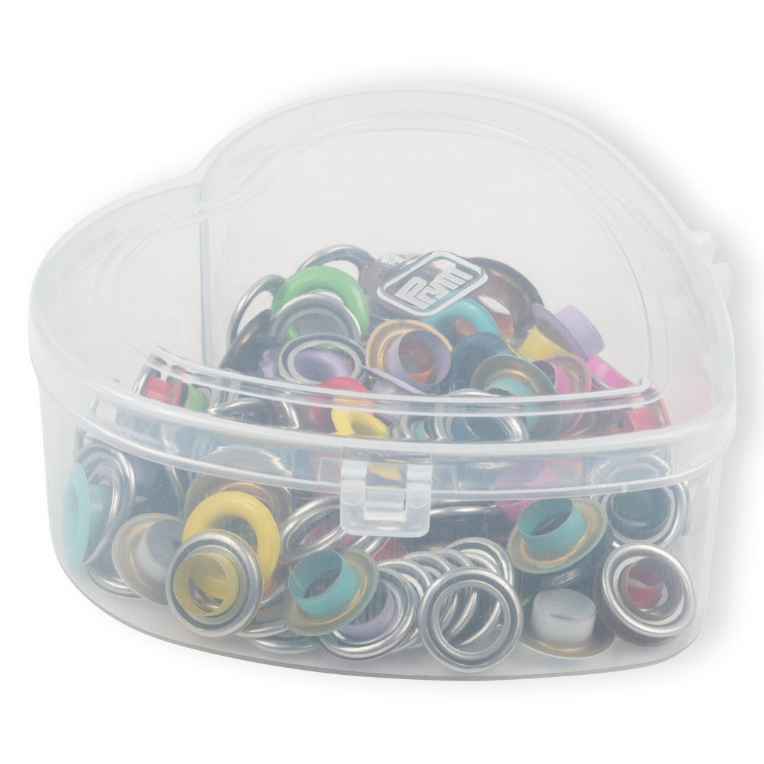 Ösen mit Scheiben, bunt, in Herzbox, 8 mm