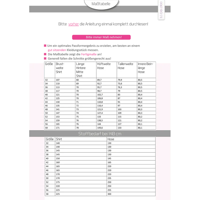 Dieses Set enthält alle Schnittmusterteile in den Größen 32-58 in Farbe auf einem DIN A0 Bogen und eine ausführlich bebilderte Nähanleitung als DIN A4 Broschüre. Unsere Schnittmuster sind auf einem DIN A0 Bogen gedruckt. Je nach Anzahl und Grösse der Schnittteile überlagern sich diese und müssen kopiert werden. Der Schnittmusterbogen ist beidseitig bedruckt.