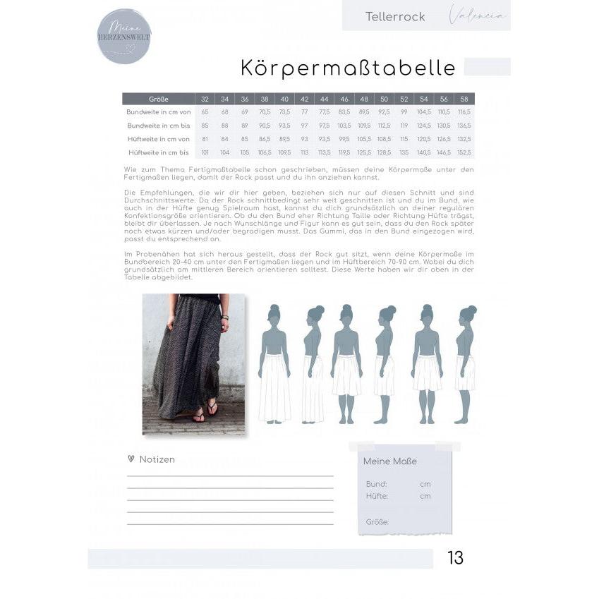 💃 Damen Tellerrock Valencia – Papierschnittmuster in Größe 32–58