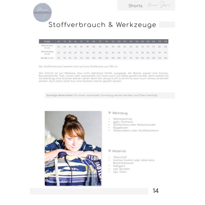 Mit der „Suri Kids“ Shorts nähst du deinen kleinen Abenteurern die perfekte Sommerhose – bequem, robust und herrlich unkompliziert. Das Schnittmuster umfasst die Größen 74–176 und begleitet Kinder vom Kleinkind- bis ins Teeniealter. Egal ob Strandburgen bauen, im Garten toben, auf der Promenade flanieren oder die Welt entdecken – Suri macht wirklich alles mit. 💙