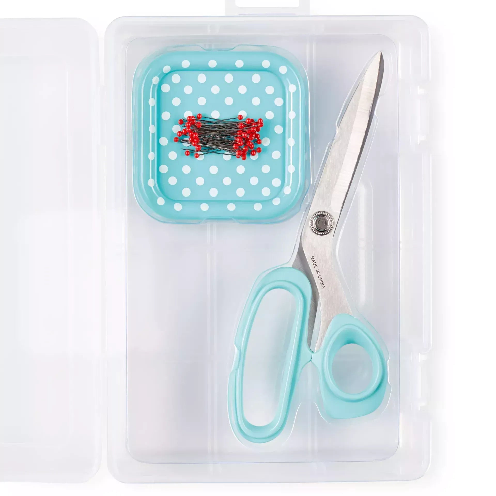 Alles in einer Box: Das Starter Set „Nähen“ aus der Serie „Prym Love“ enthält alle wichtigen Utensilien im farbigen Look für den Nähanfänger. Für Zuhause, unterwegs im Workshop oder als Geschenk – die transparente Box aus Kunststoff mit hochwertigem Nähzubehör ist einfach ein unverzichtbarer Begleiter. Die zwei Ebenen in der Box sorgen für Ordnung bei den enthaltenen Werkzeugen in den frischen „Prym Love“ Farben. Enthalten sind: eine Schere, eine gefüllte Nadelmappe, ein magnetisches Nadelkissen inkl. Glaskopfstecknadeln, Markierstift mit weißer Mine, Handmaß, Nahttrenner prym.ergonomics und ein Mini-Nadelkissen etc.