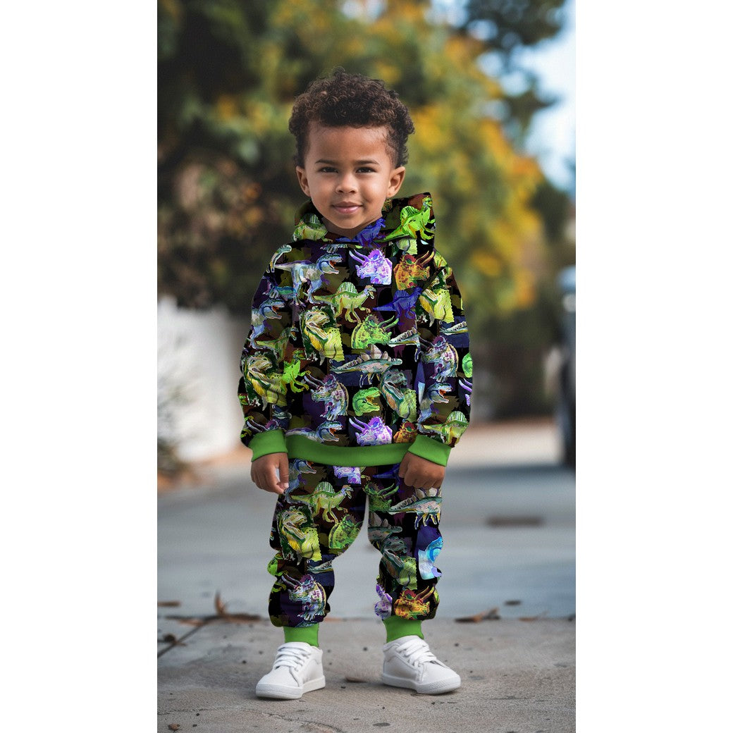 Ob Hoodies, Sweatshirts, Jogginghosen oder Kinderkleider – dieser Sweatstoff macht einfach Spaß zu vernähen und sorgt garantiert für strahlende Augen bei allen Dino-Fans.