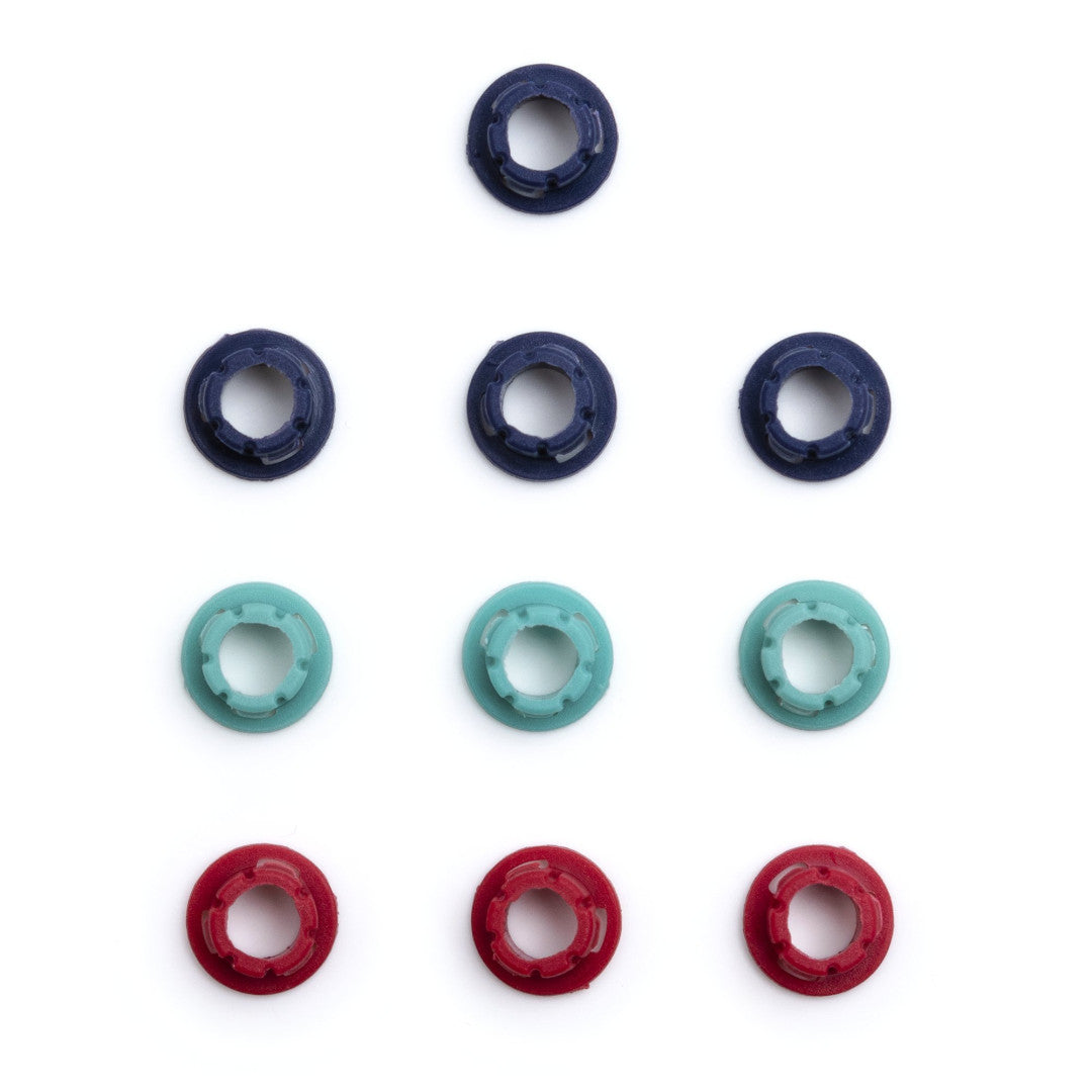 Damit deine VARIO-Zange immer zuverlässig im Einsatz bleibt: Dieses Set enthält 12 Ersatz-Inlays in drei Farben (violett, rot und mint). Sie ersetzen abgenutzte oder verlorene Teile und sorgen so dafür, dass deine Zange wieder voll funktionsfähig ist. Aus hochwertigem Kunststoff gefertigt, sind die Inlays robust und langlebig – perfekt für alle, die regelmäßig mit Druckknöpfen, Ösen und Nieten arbeiten.